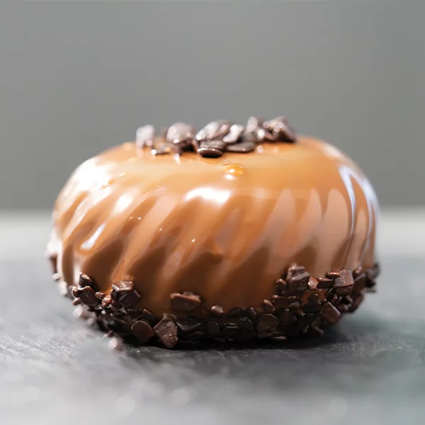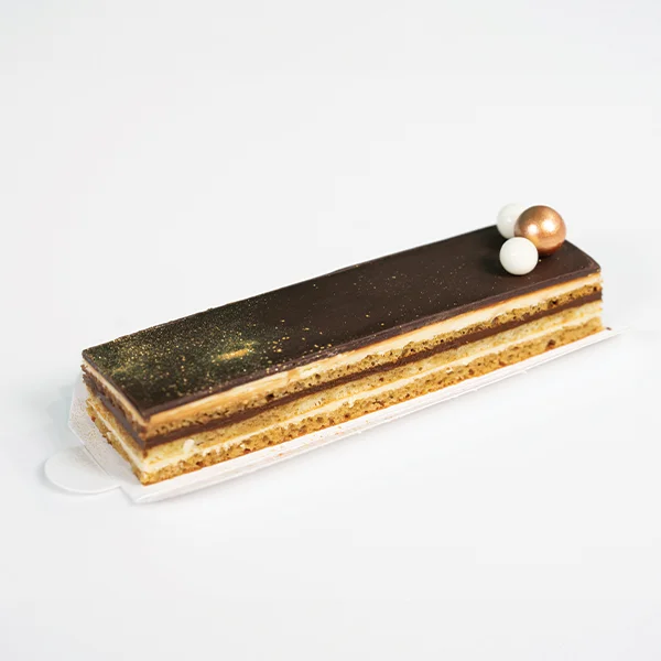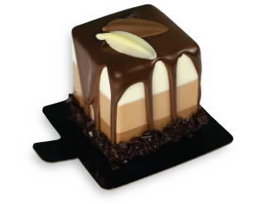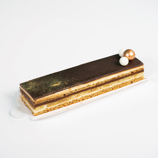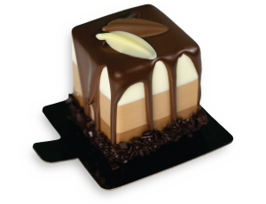 Blat cu multă ciocolată, choux-uri cu ganache bătut cu fistic și mousse de ciocolată cu lapte.
