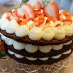 Tort cu vișine și cremă de brânză, îmbrăcat în cremă de unt